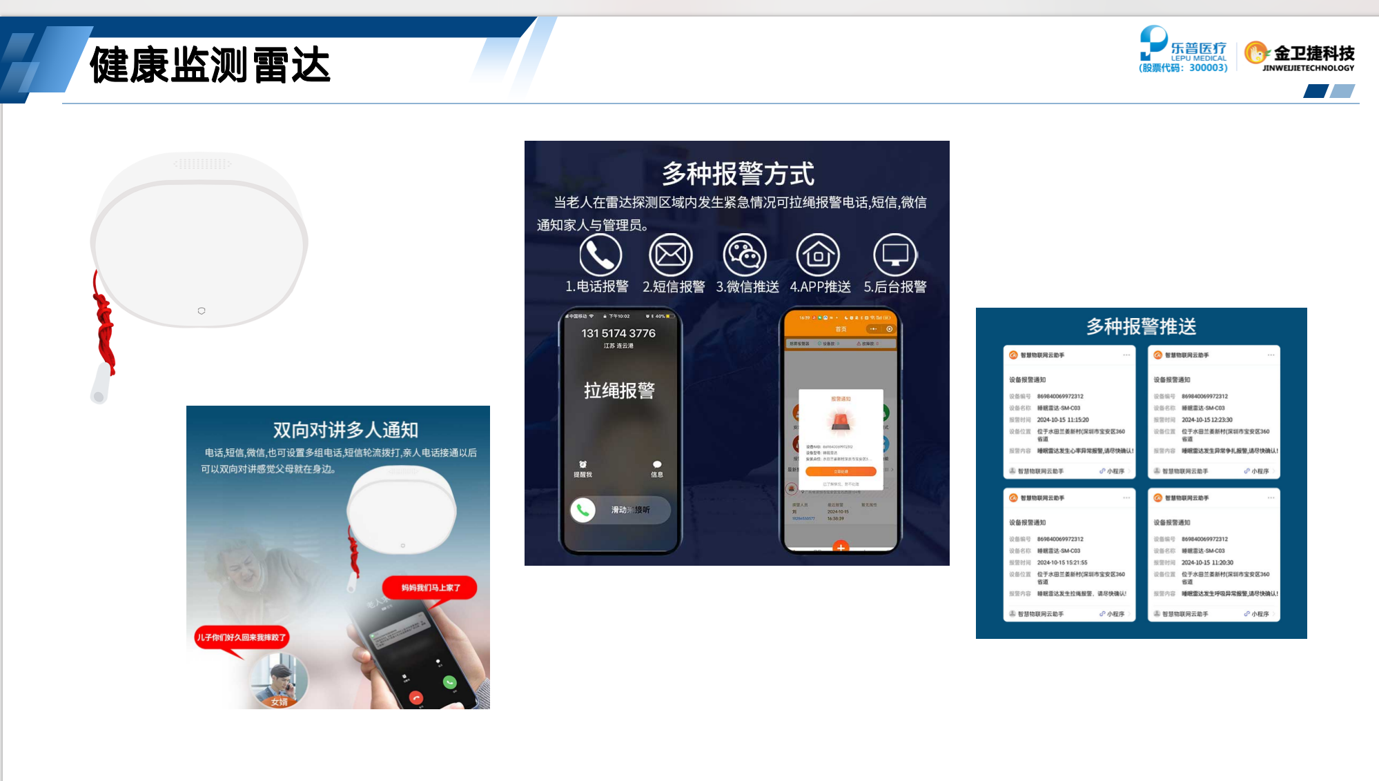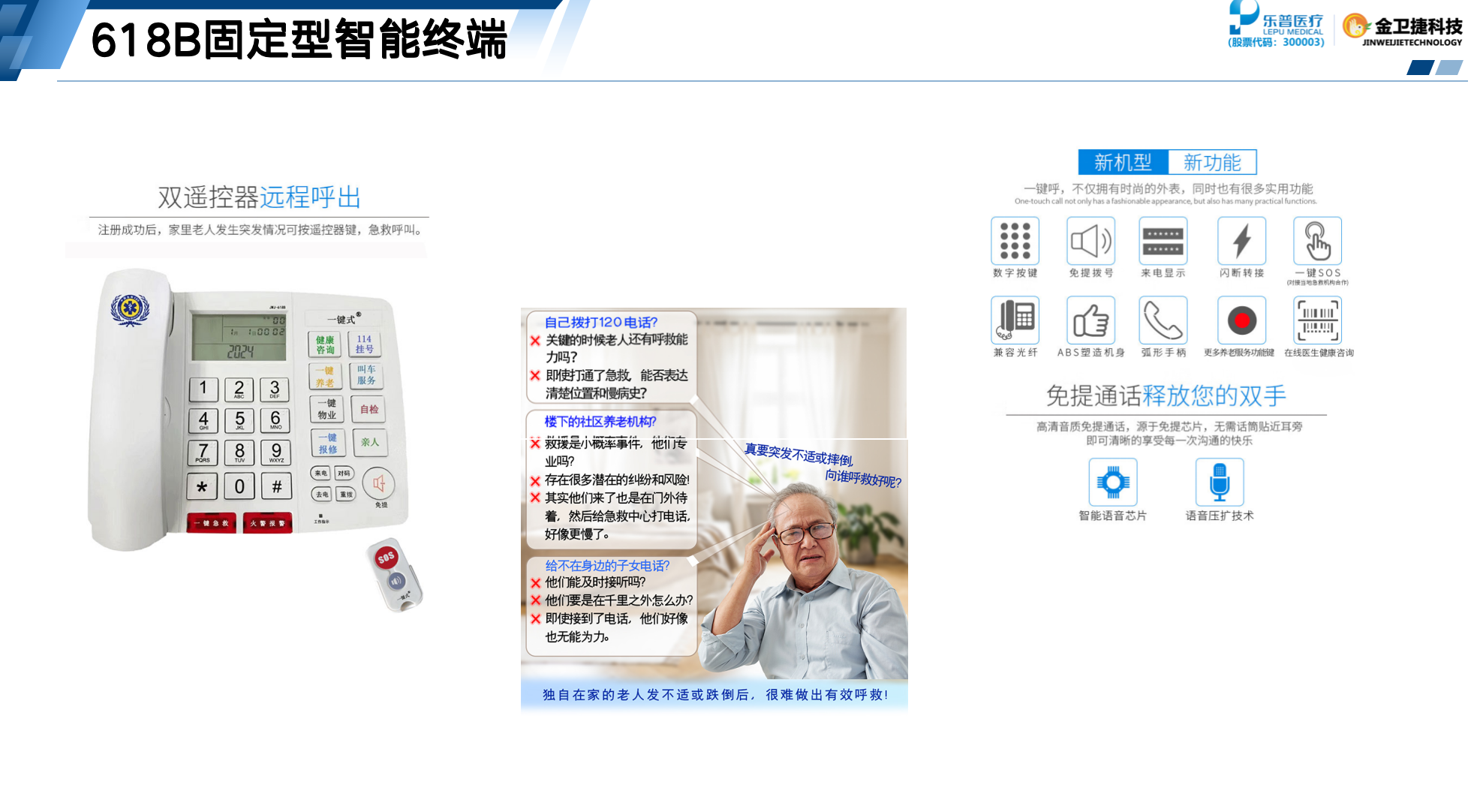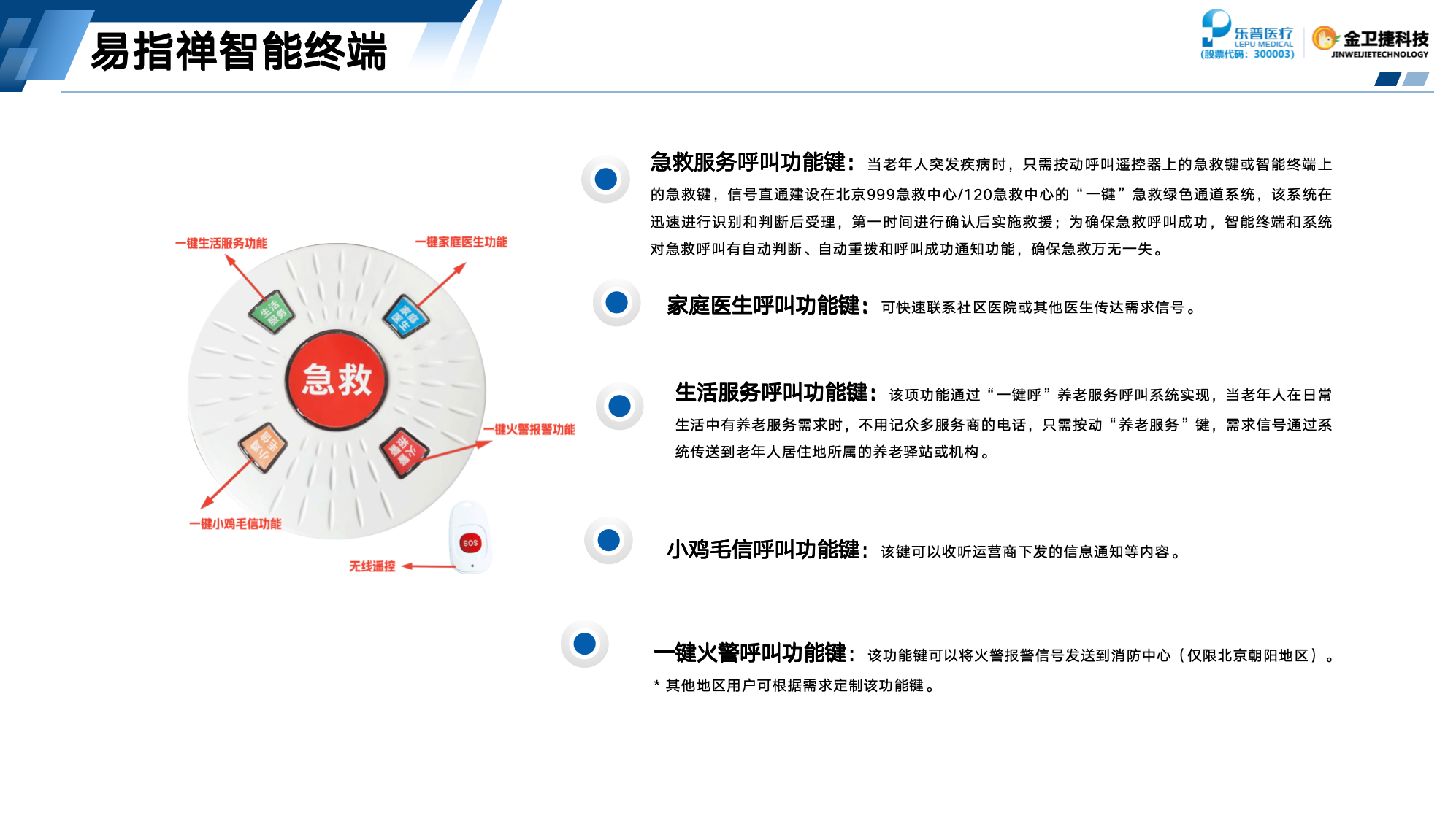 北京金卫捷科技发展有限公司于 1999 年7月注册成立,国家级高新技术企业、北京市首批专精特新中小企业、中关村科技园区“瞪羚”重点培音企业、北京市诚信创建企业。企业专注创新养老服务模式及智慧健康养老服务产品与技术的生产研发,以客户需求和前沿技术驱动创新为导向,运用人工智能、大数据、云计算等先进技术,研发了“一键”急救绿色通道系统、“一键”家庭医生服务呼叫系统等拥有自主知识产权的创新养老服务产品,涵盖多项服务内容,满足老年人居家养老基本需求,为各级政府和相关机构提供居家养老的解决方案和技术产品保障。